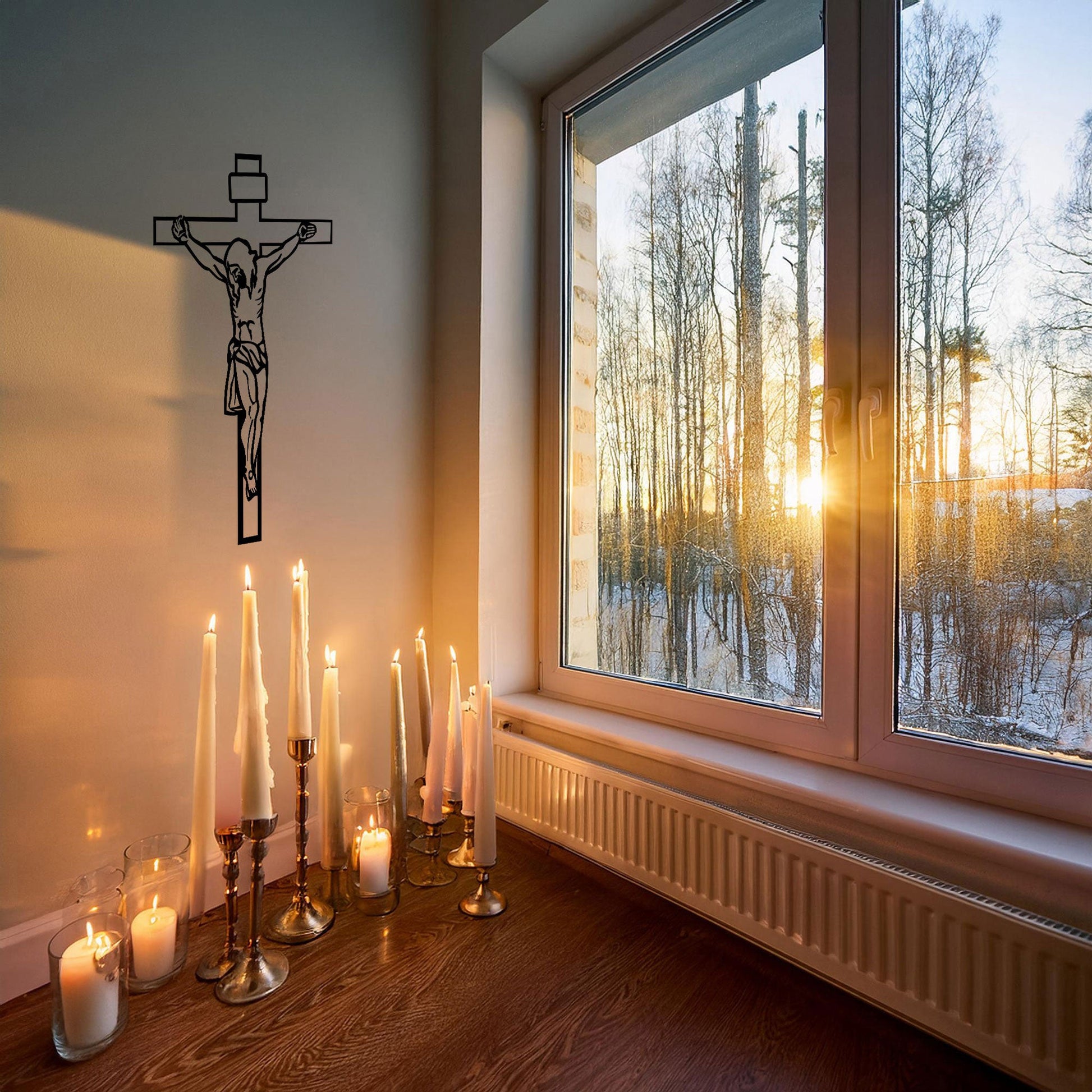 This Crucifixion design is perfect for creating a serene and reflective atmosphere in your home, chapel, or prayer space. A beautiful and timeless representation of faith, it is also an excellent gift for your loved ones.