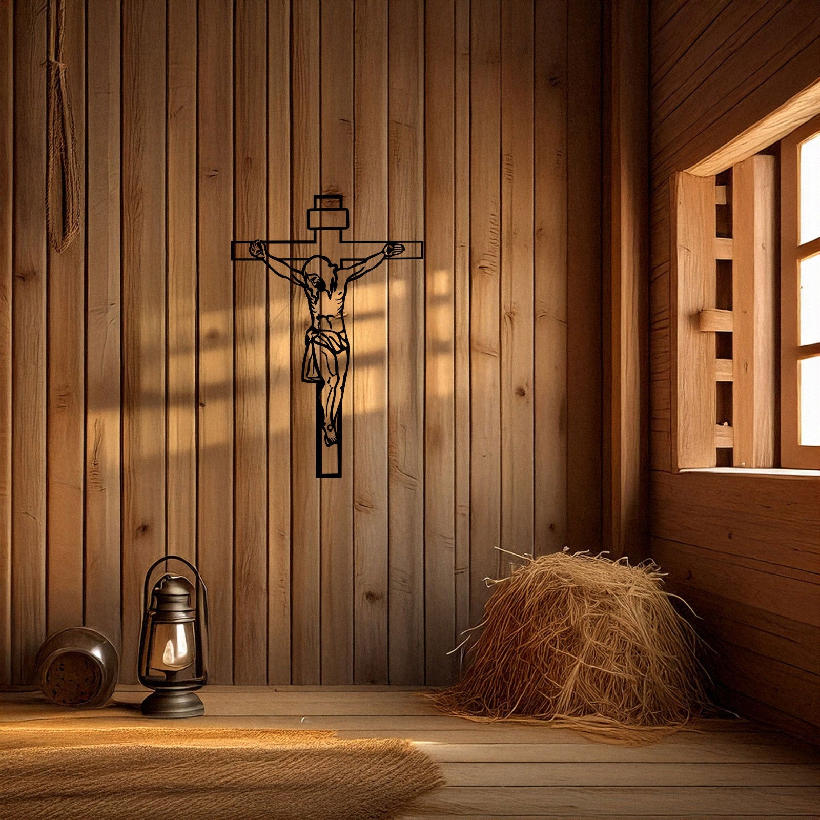 Enhance your home or sacred space with this laser-cut metal wall decor featuring the Crucifixion of Jesus. Crafted with precision and finished in elegant black, this striking design is a meaningful addition to any Christian home, church, or meditation room.